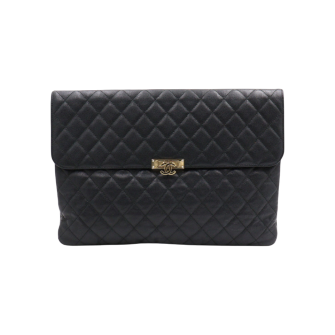 샤넬 A84053 더블 금장 턴락 CC 블랙 캐비어 플랩 라지 클러치백 aa51748