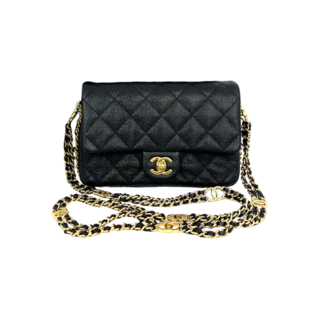 샤넬 더블 체인 미니 플랩백 블랙 금장 AS3757