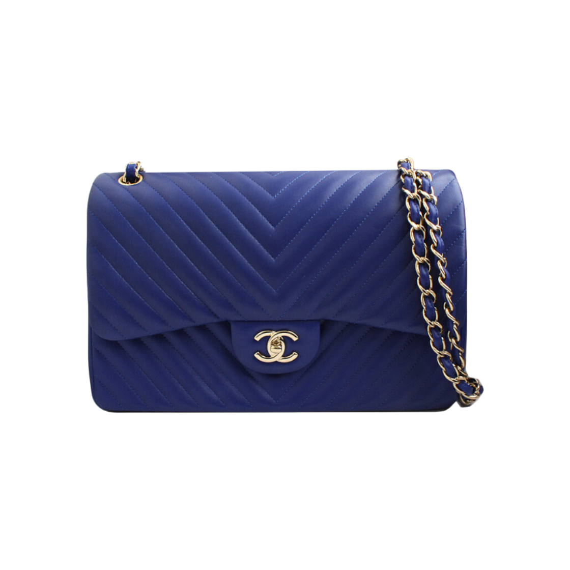 샤넬 로열 블루 램스킨 쉐브론 더블 플랩 숄더백 (24번대)