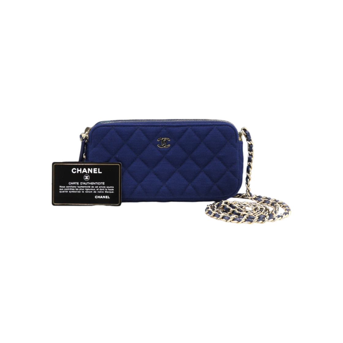 샤넬 A82527 네이비 캔버스 더블 지퍼 WOC 클래식 금장 체인 미니 크로스백 aa46186
