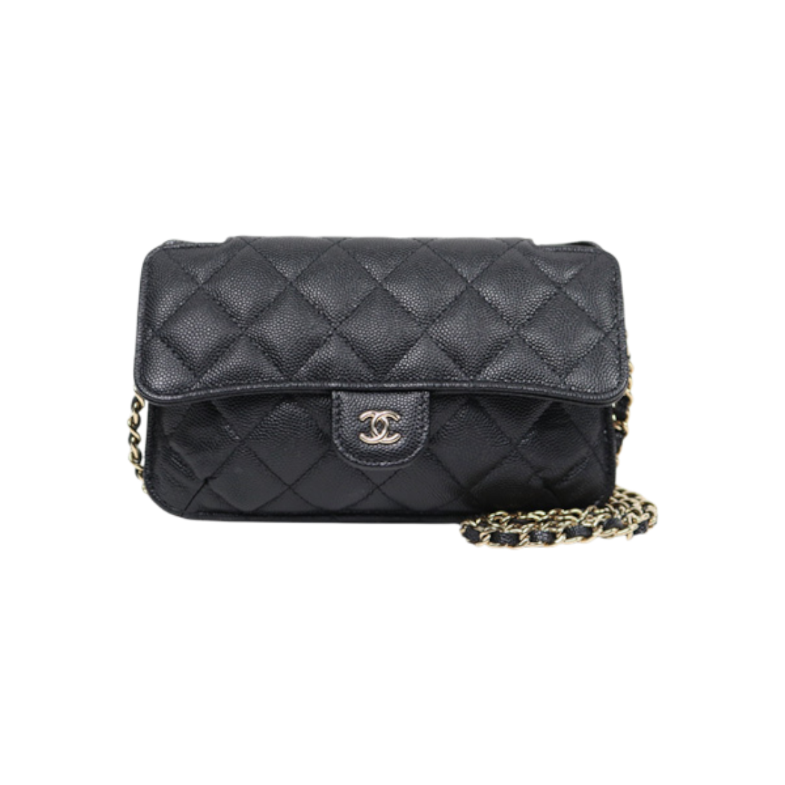 샤넬 블랙 캐비어 폴더블 체인 숄더백 D-A43416