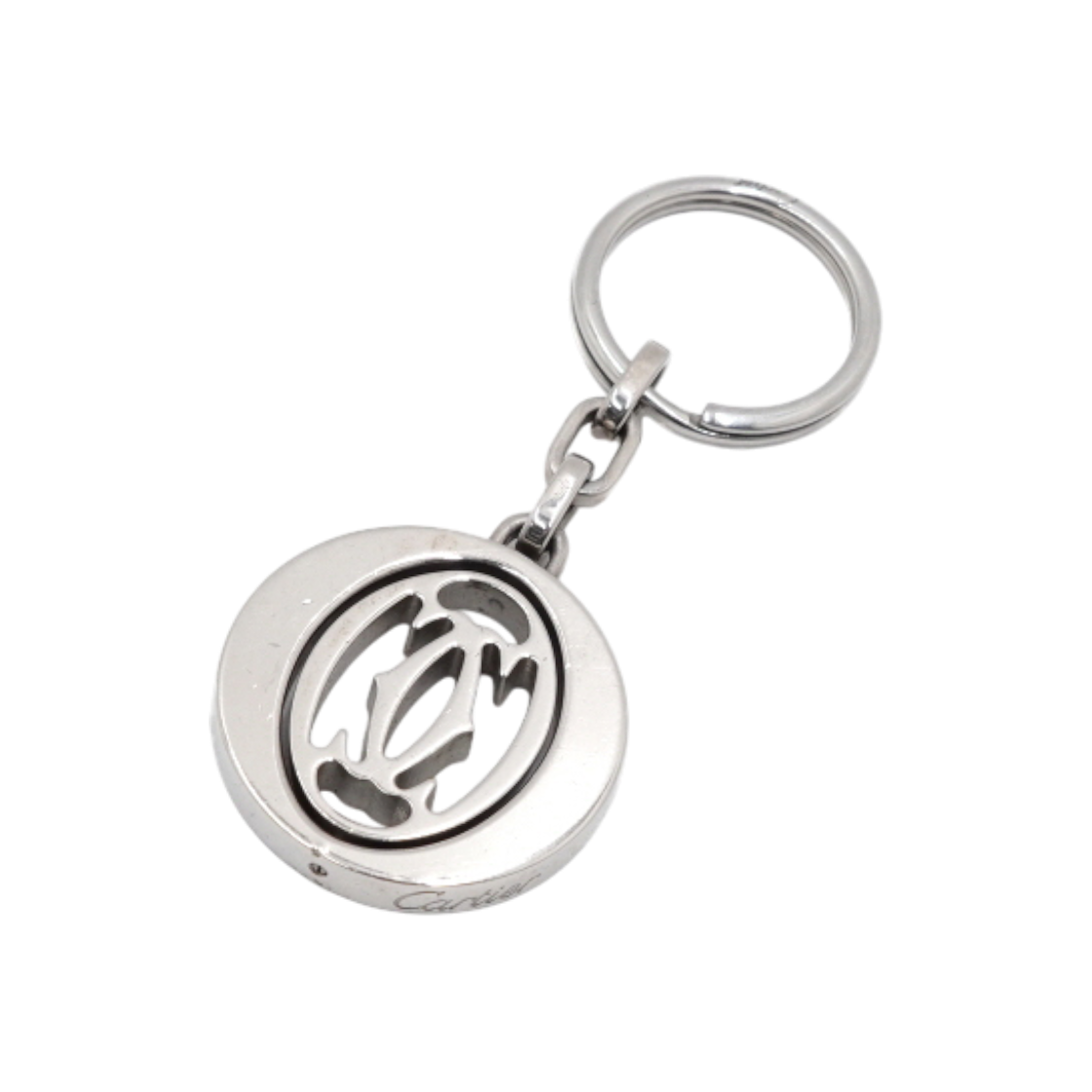 까르띠에 스틸 피봇팅 더블 C 데코 회전 키링 겸 백참 aa58995