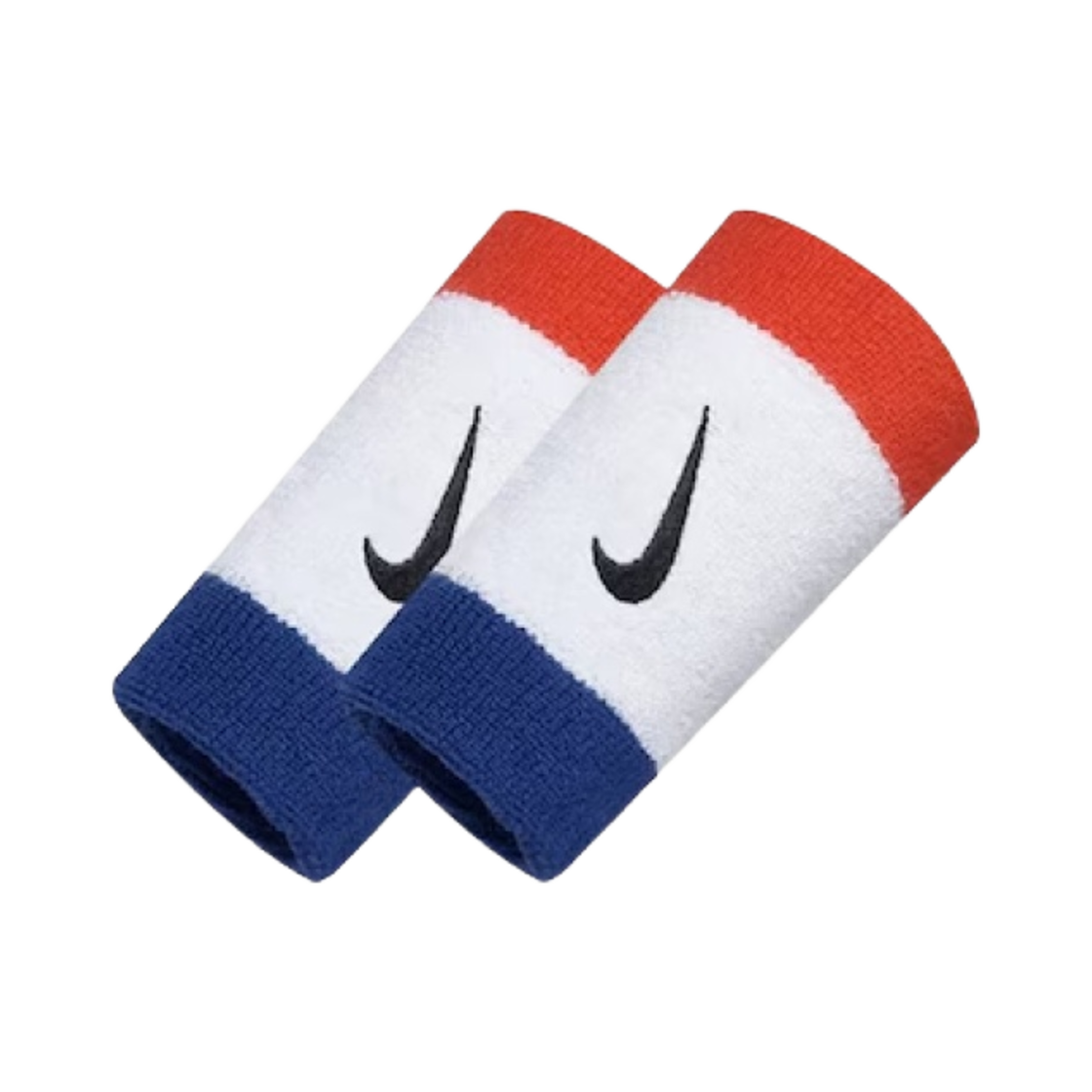 나이키 스우시 더블 와이드 손목밴드 화이트 블루 레드