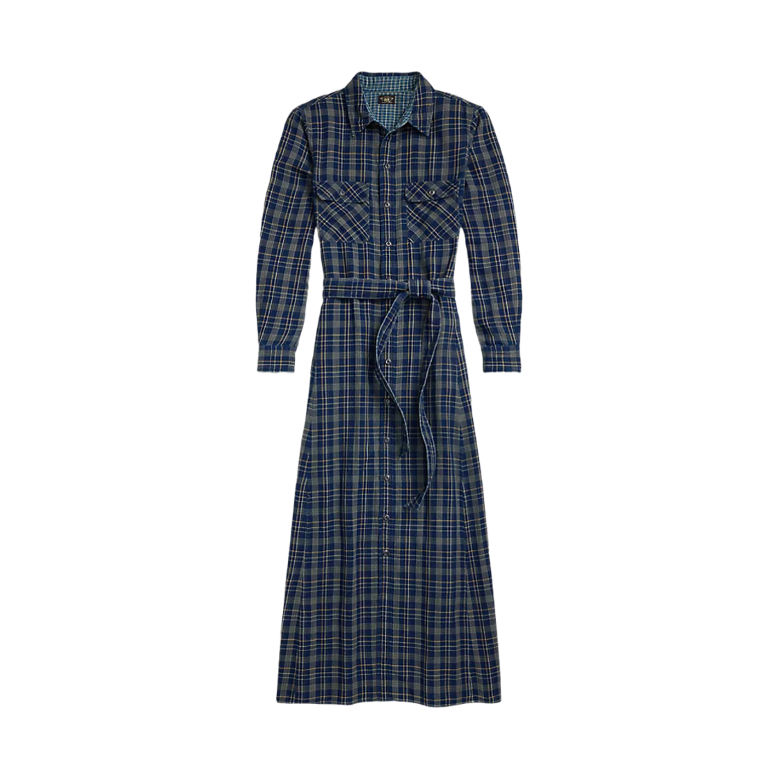 (W) 더블알엘 인디고 플레이드 더블 페이스 셔츠 드레스 다크 인디고