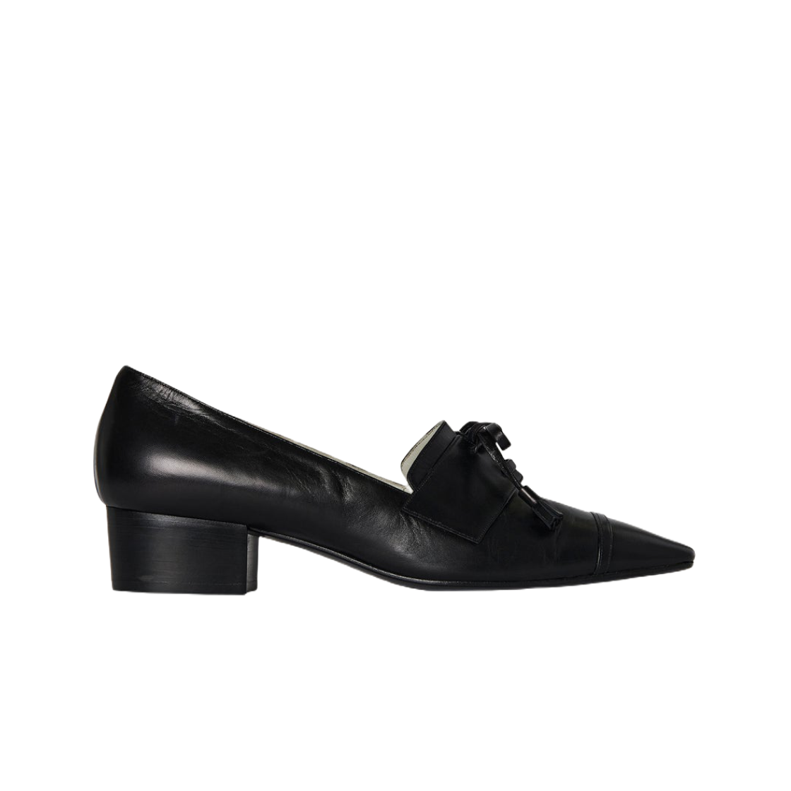 (W) 더 로우 스퀘어 레더 로퍼 블랙