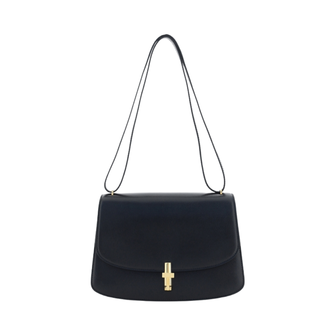 더 로우 여성 하프문 스무스 카프스킨 레더 숄더백 핸드백 블랙