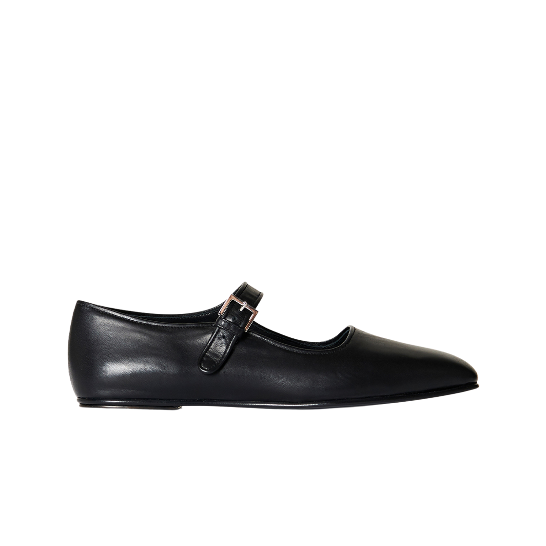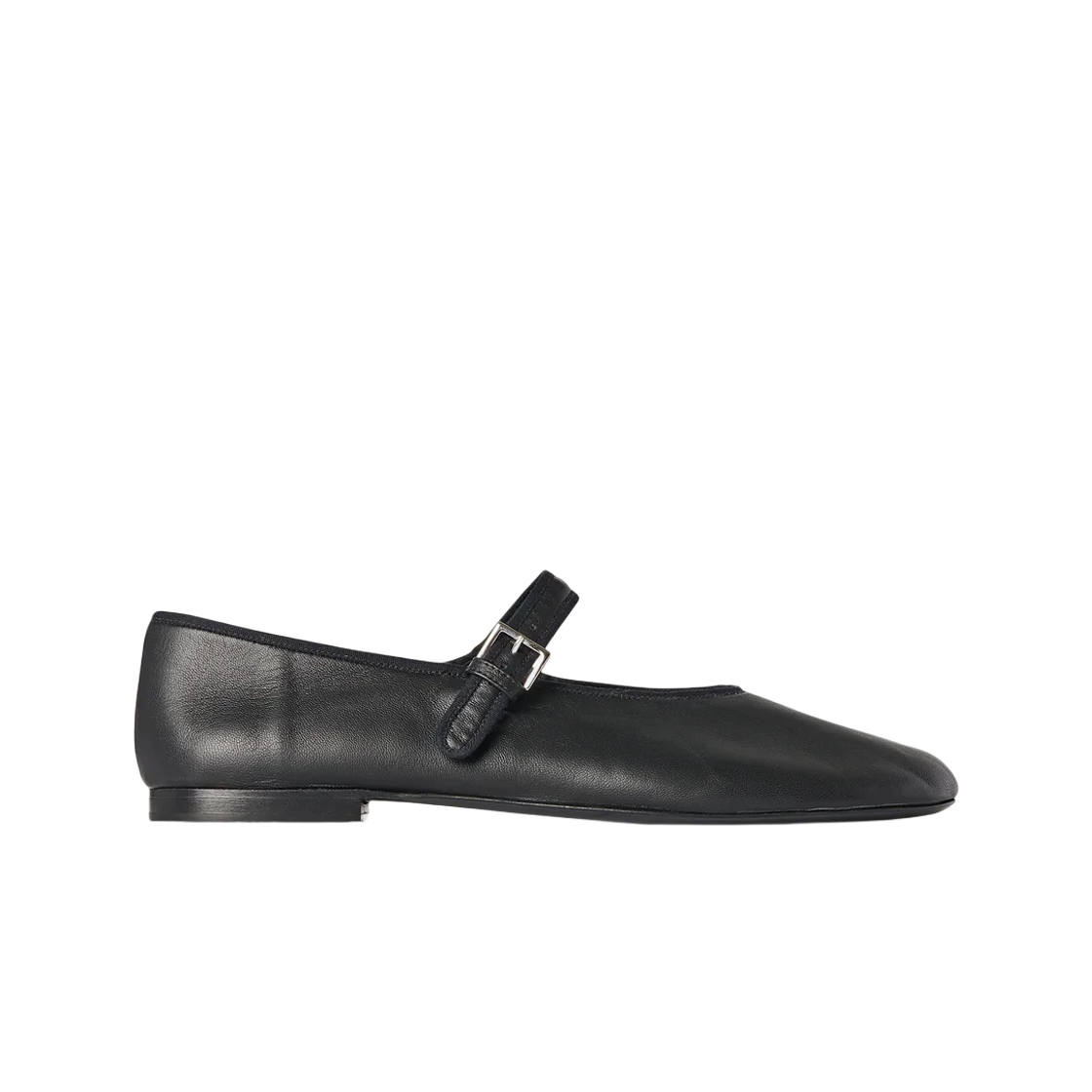(W) 더 로우 레더 스퀘어 발레 플랫 블랙