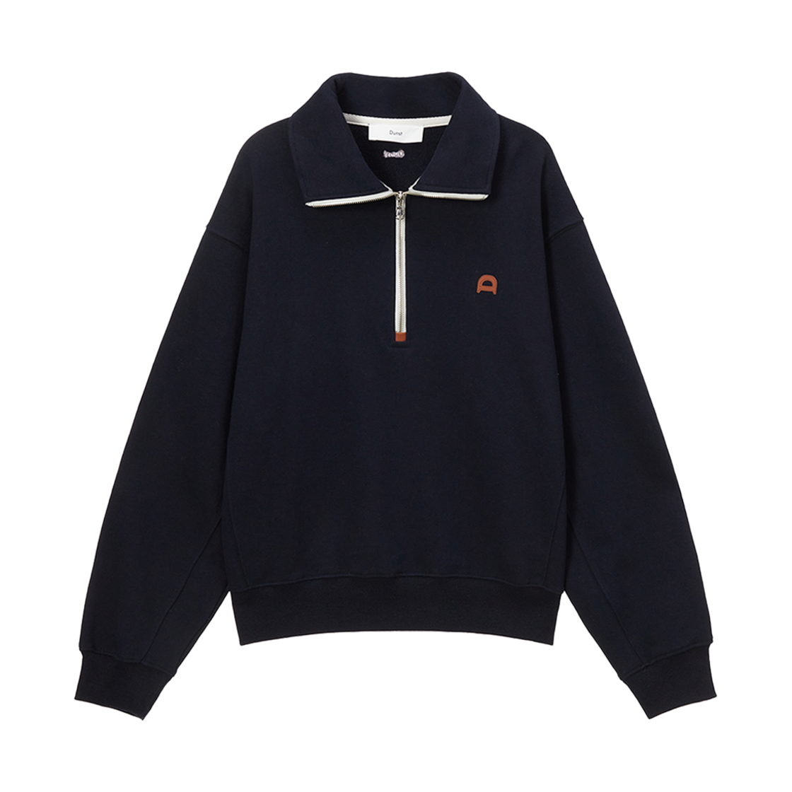 던스트 유니섹스 레더 로고 하프 집업 스웨트셔츠 프렌치 네이비