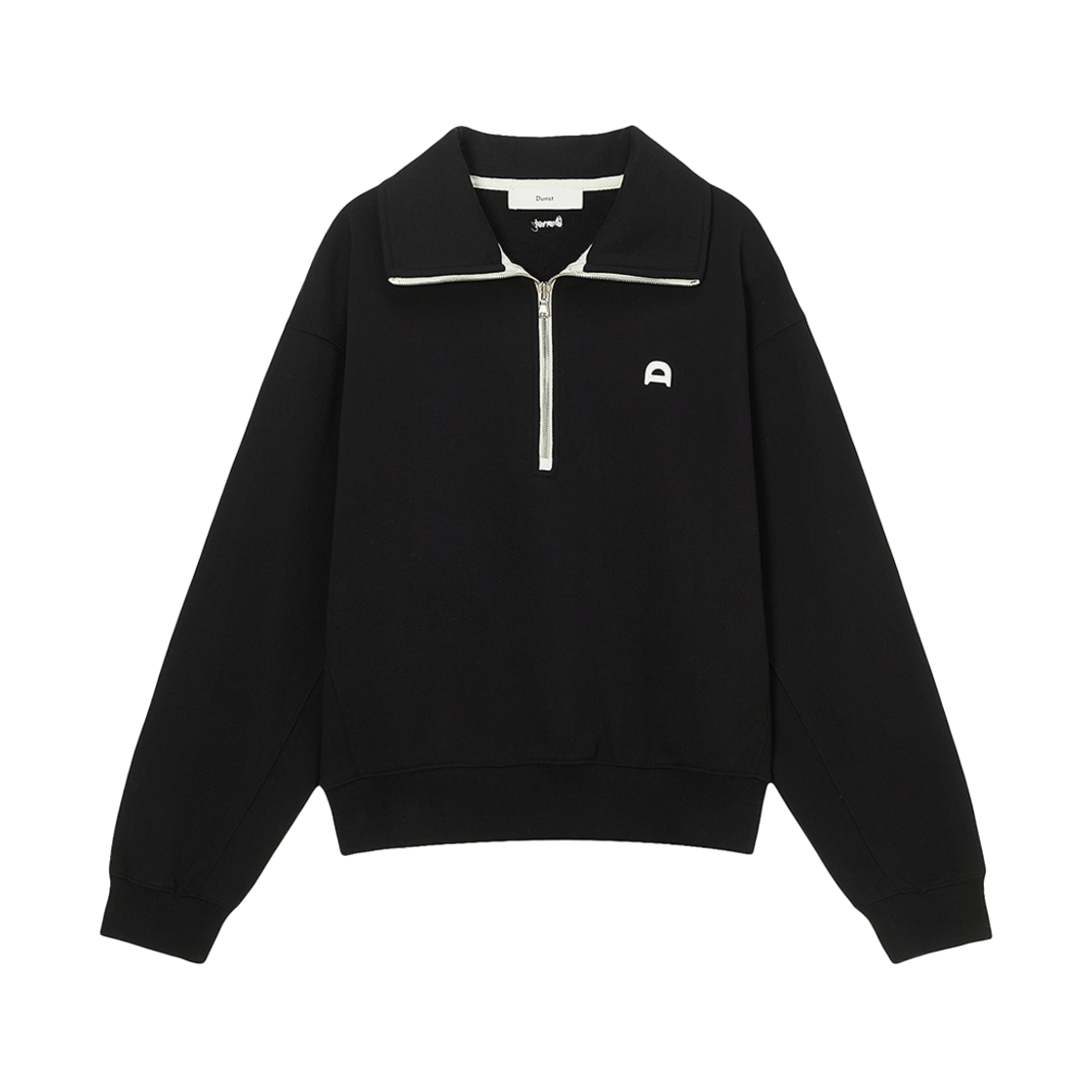 던스트 유니섹스 레더 로고 하프 집업 스웨트셔츠 블랙