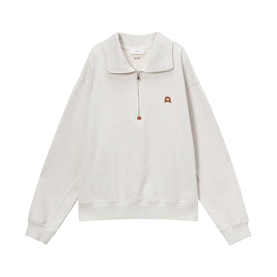 던스트 유니섹스 레더 로고 하프 집업 스웨트셔츠 오트밀 멜란지