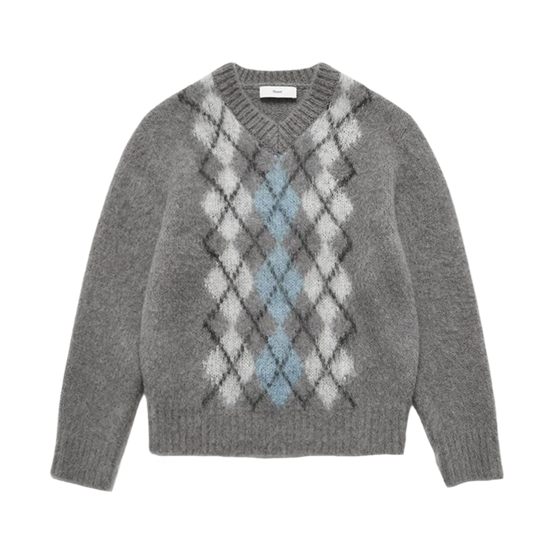 던스트 베이비 알파카 아가일 스웨터 멜란지 그레이