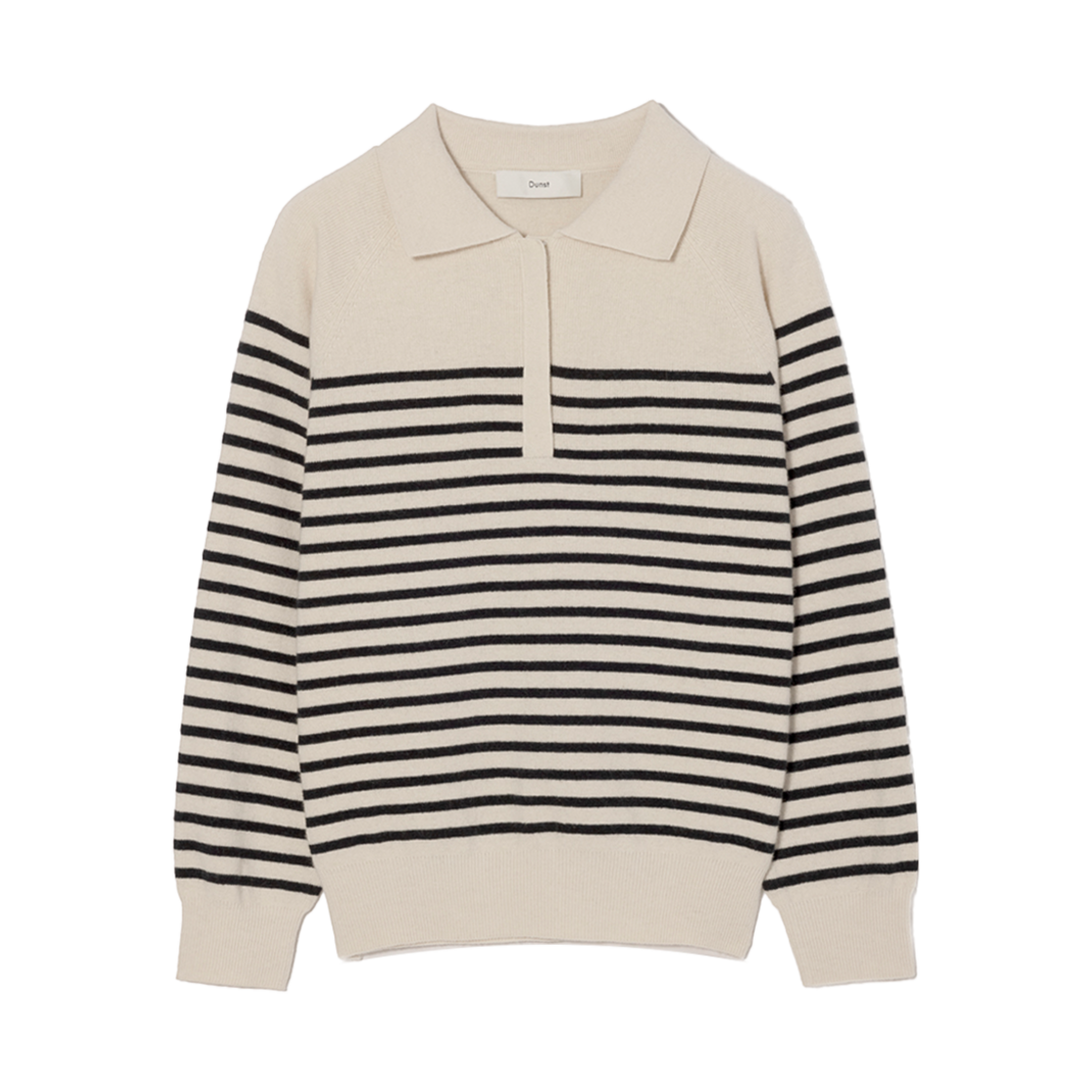 던스트 유니섹스 스트라이프 하프 집업 스웨터 크림