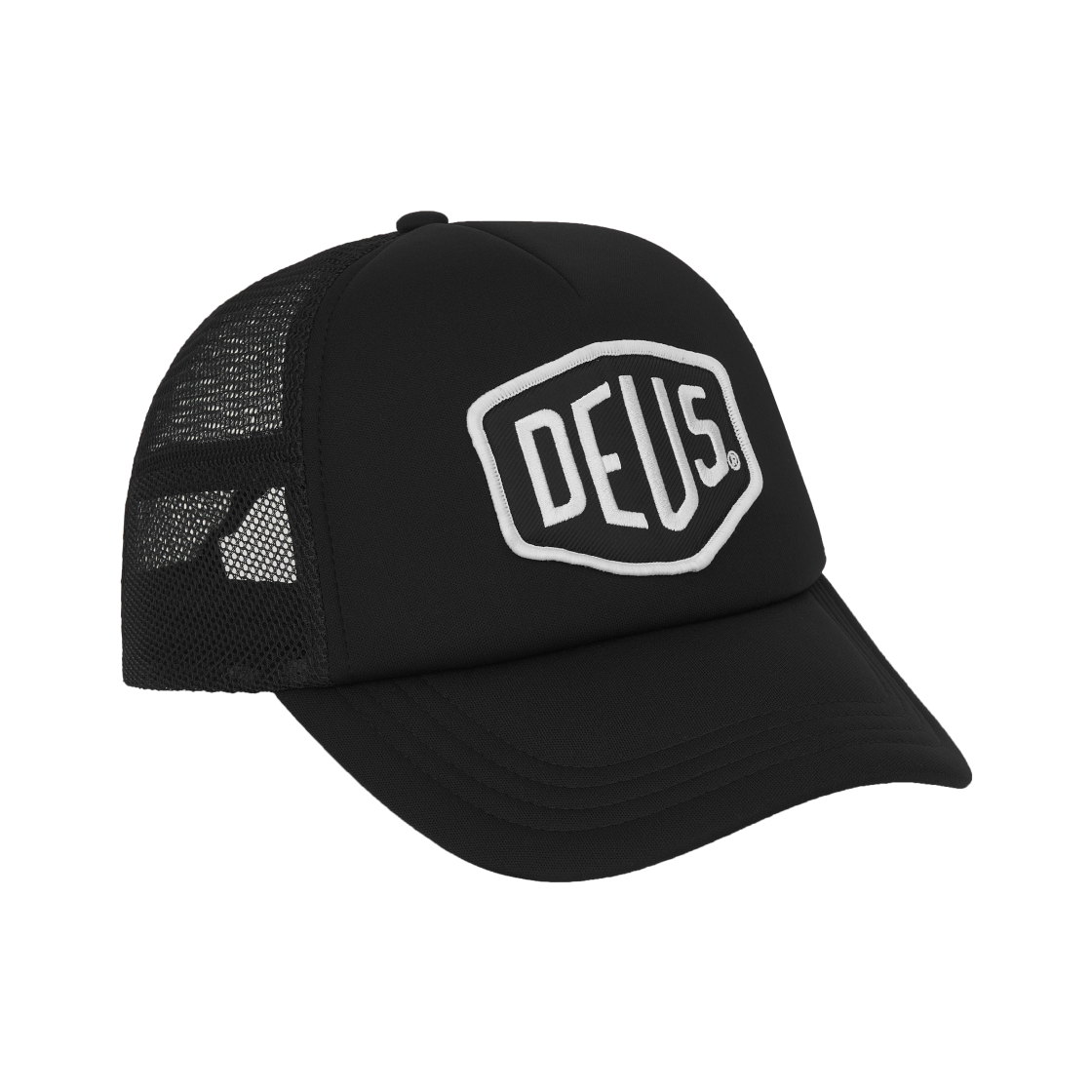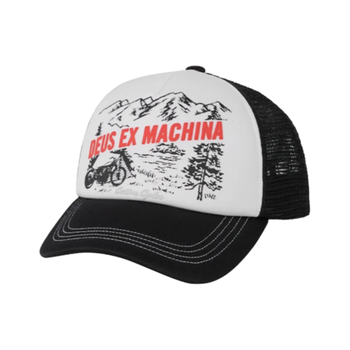 데우스 엑스 마키나 써클 로고 트러커 캡 블랙 화이트