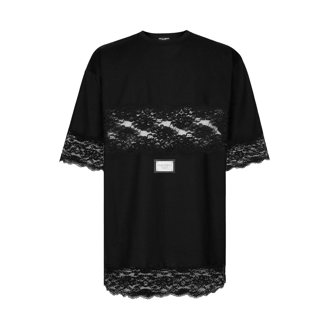 (W) 돌체 앤 가바나 태그 레이스 인서트 저지 티셔츠 블랙
