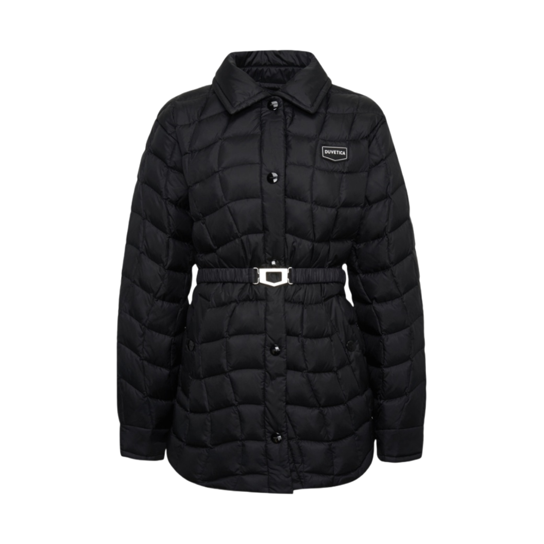 (W) 듀베티카 비에타 퀼티드 롱 벨티드 셔츠 라이트웨이트 패딩 블랙