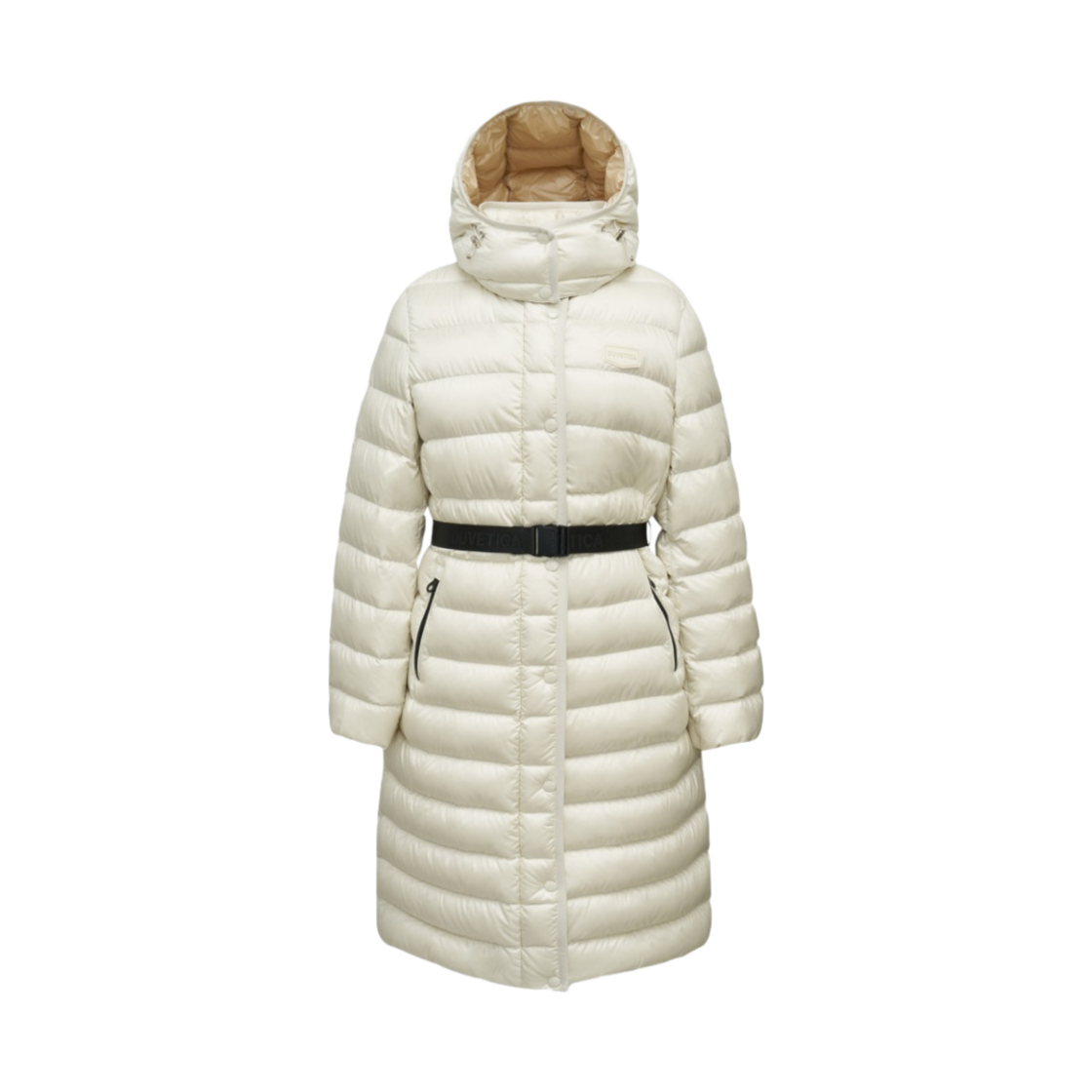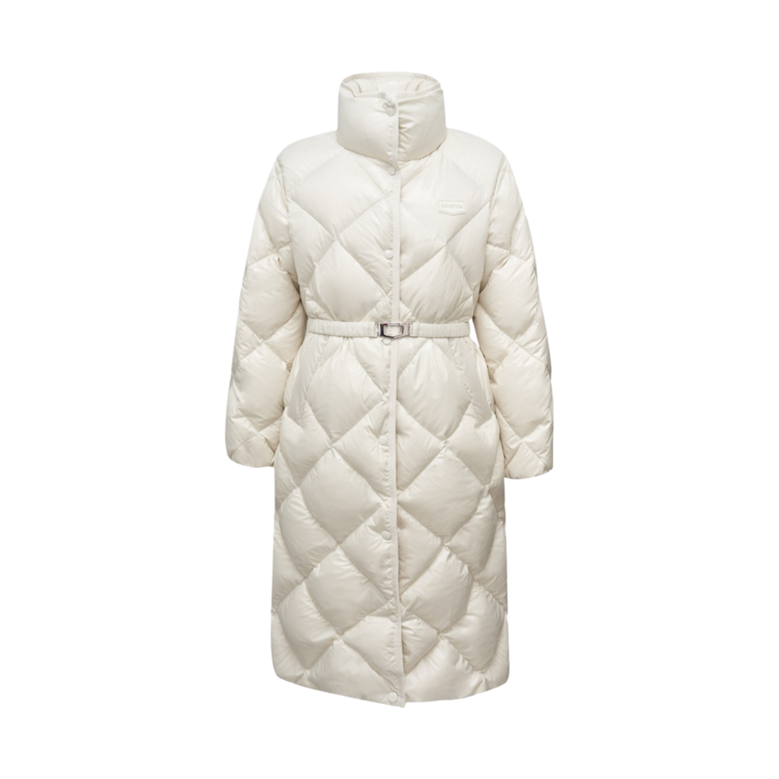 (W) 듀베티카 알로로 페미닌 벨티드 미디 랭스 다운 자켓 화이트