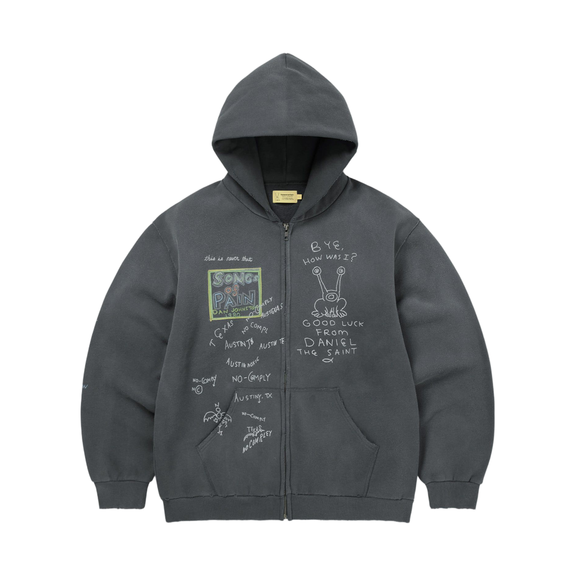 디스이즈네버댓 x 다니엘 존스턴 송즈 오브 페인 페이디드 집업 후드 리얼트리