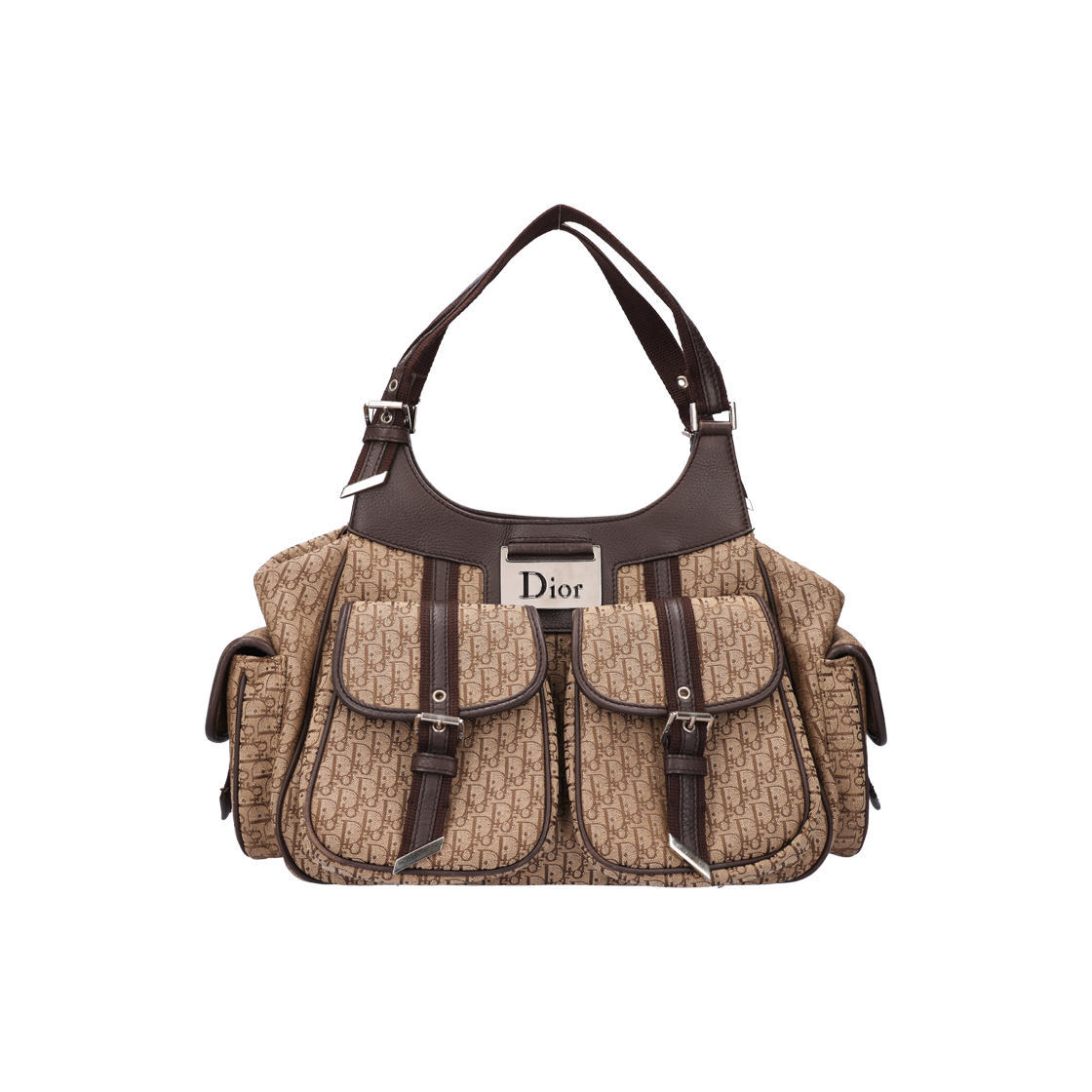 디올 숄더 스트랩 파우치 베이지 & 블랙 디올 오블리크 자카드