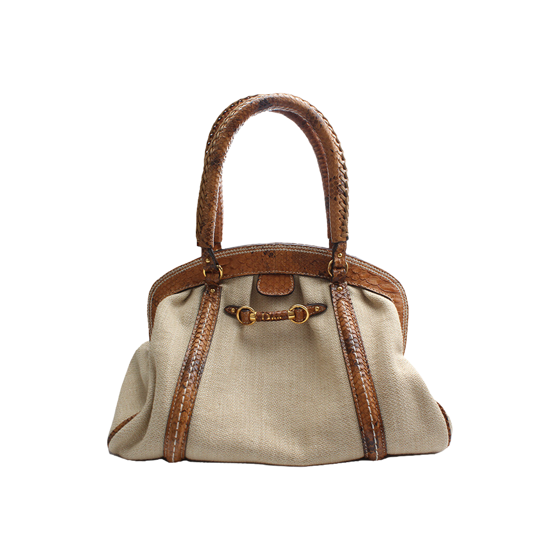 디올 새들 스트랩 파우치 그레인드 카프스킨 베이지 & 블랙 디올 오블리크 자카드 블랙