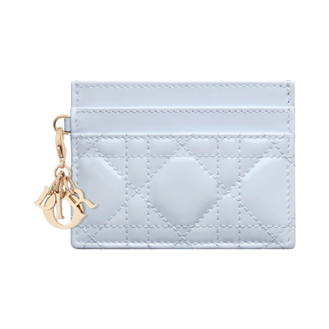 디올 레이디 프리지아 카드 홀더 페이턴트 까나쥬 카프스킨 셔츠 블루