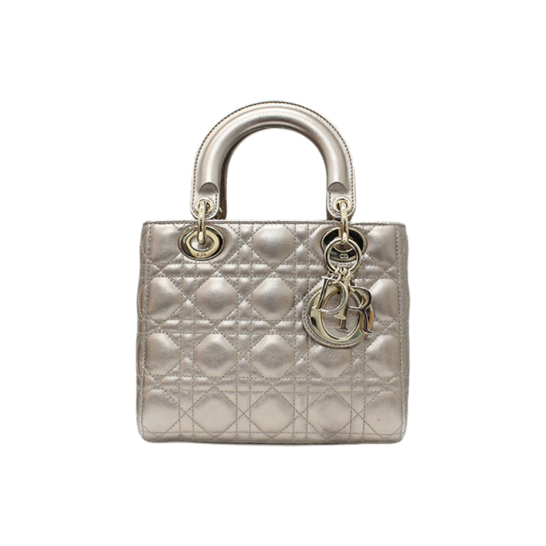 디올 메탈릭 실버 레이디 디올 리자드 패턴 미디엄 토트백 겸 숄더백 aa40048