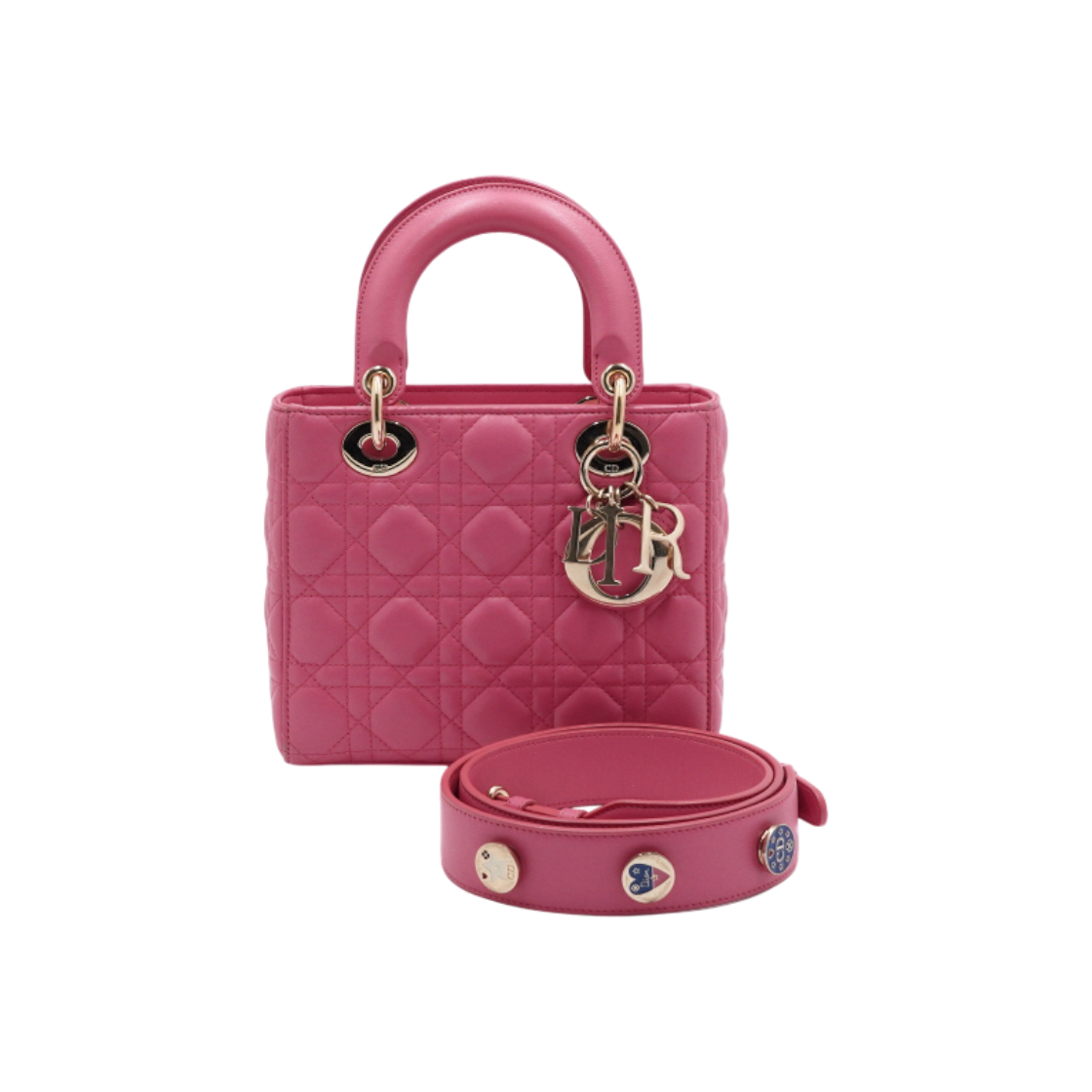 디올 M0538OCAL 핑크 램스킨 레이디디올 스몰 금장 토트백 겸 숄더백aa56901