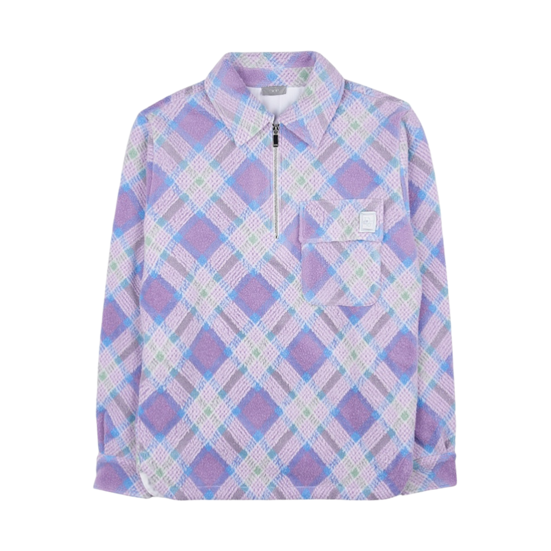디올 바이 ERL 릴렉스드 핏 모브 체커드 모헤어 울 블렌드 자카드 롱 슬리브 트러커 스웨트셔츠