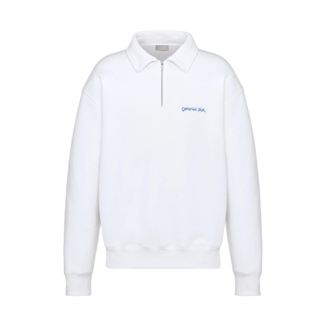 디올 코튼 플리스 크리스찬 디올 태그 스웨트셔츠 지퍼 칼라 오버사이즈 핏 화이트