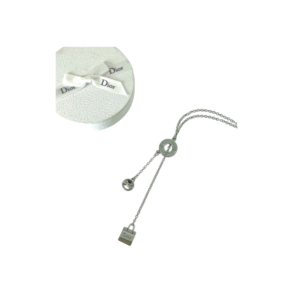 (W) 디올 쁘띠 CD 네클리스 실버 피니쉬 메탈 화이트 크리스탈