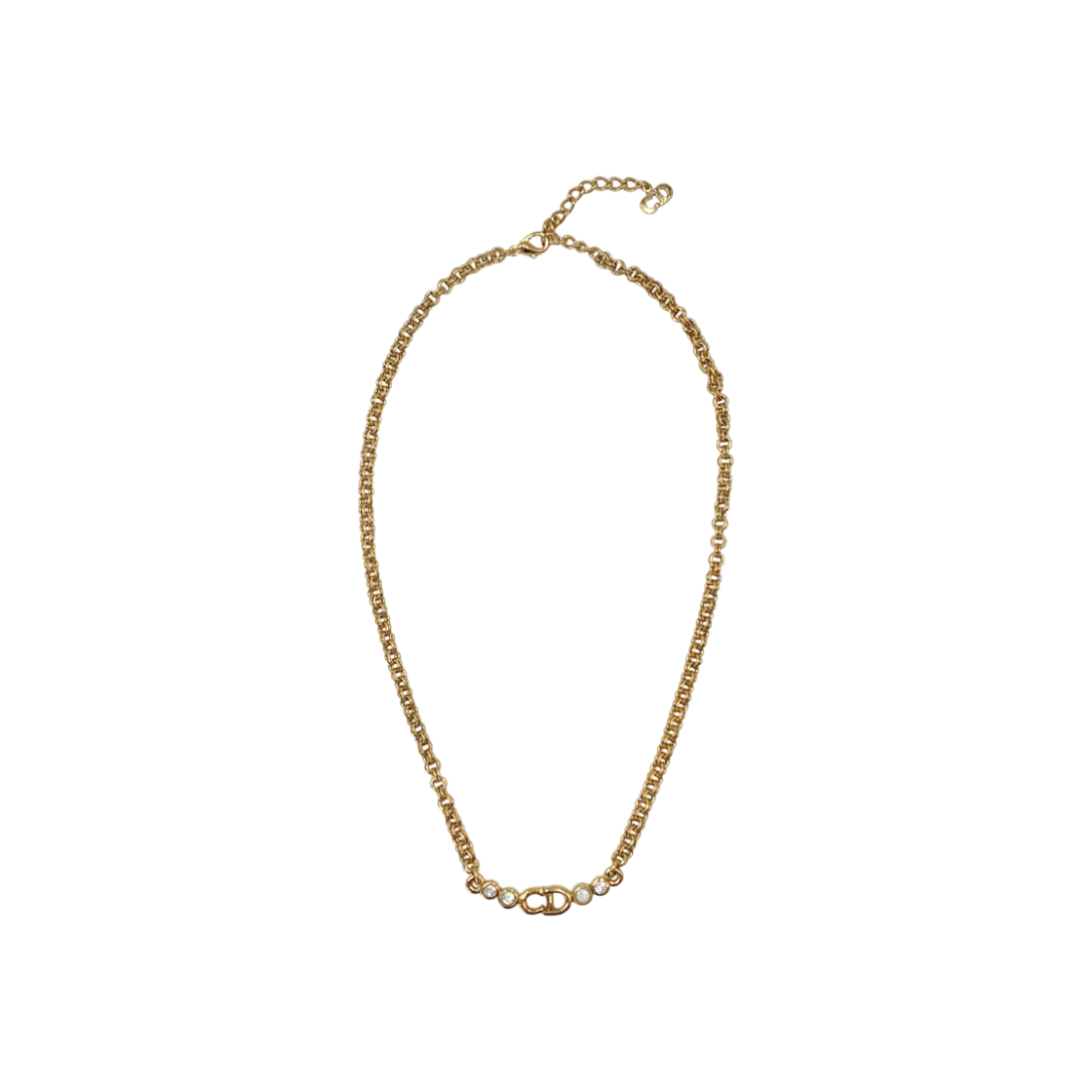 (W) 디올 쁘띠 CD 네클리스 골드 피니쉬 메탈 실버 톤 크리스탈