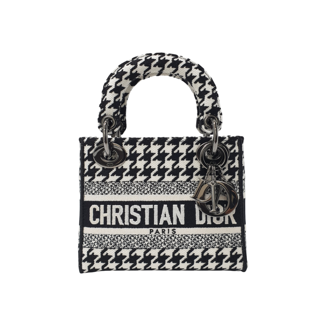 디올 S5475ZZAF 블랙 화이트 마이크로 하운드투스 자수 북토트 미니 토트백 aa48439