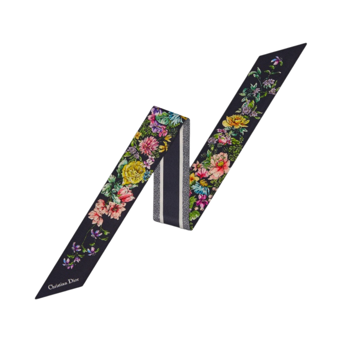 (W) 디올 D 플로럴 미차 스카프 실크 트윌 화이트 멀티컬러