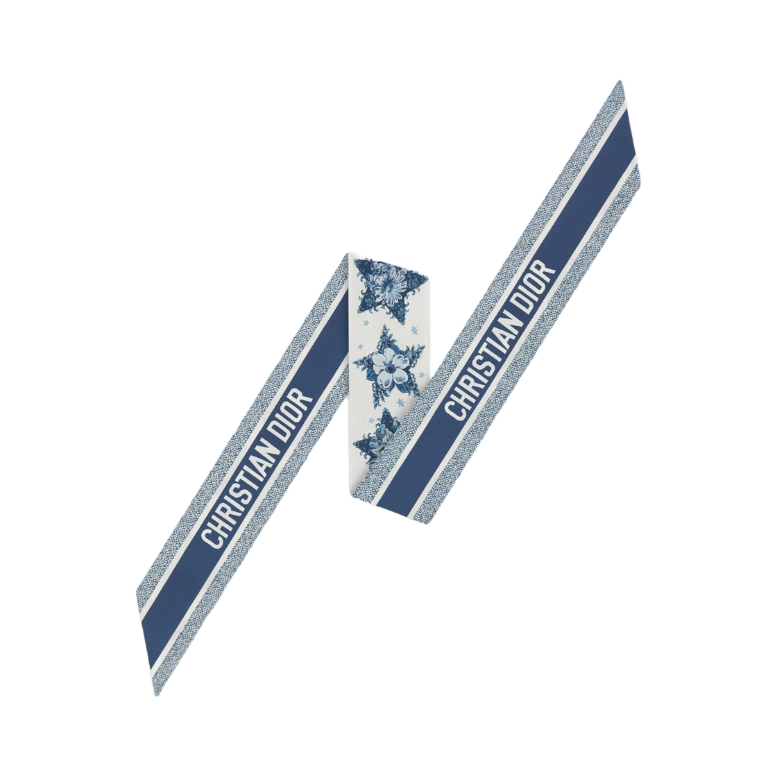 (W) 디올 스타 미차 스카프 실크 트윌 화이트 네이비 블루