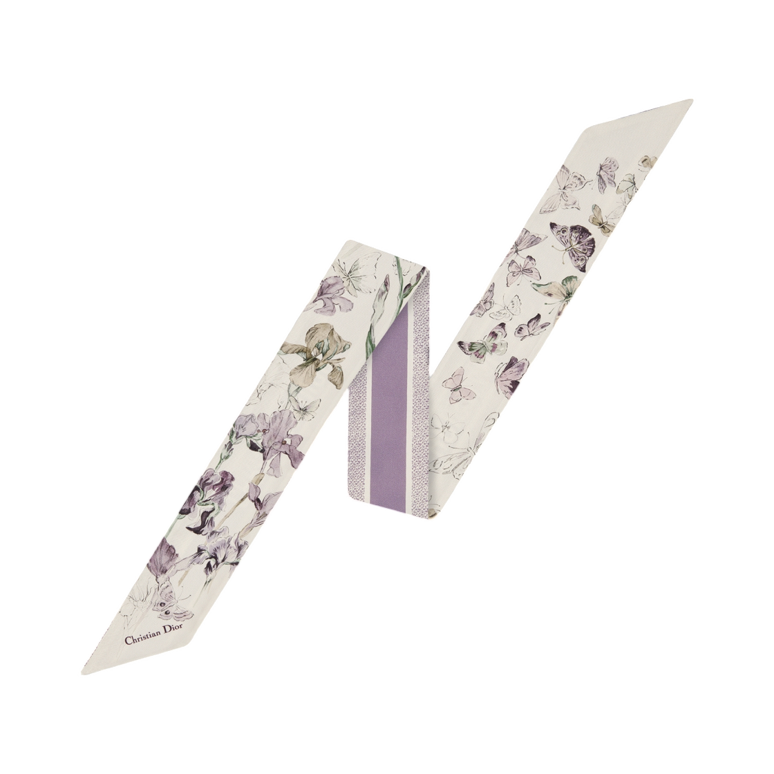 (W) 디올 버터플라이 & 아이리스 미차 스카프 앤 멀티컬러 실크 트윌 화이트 퍼플