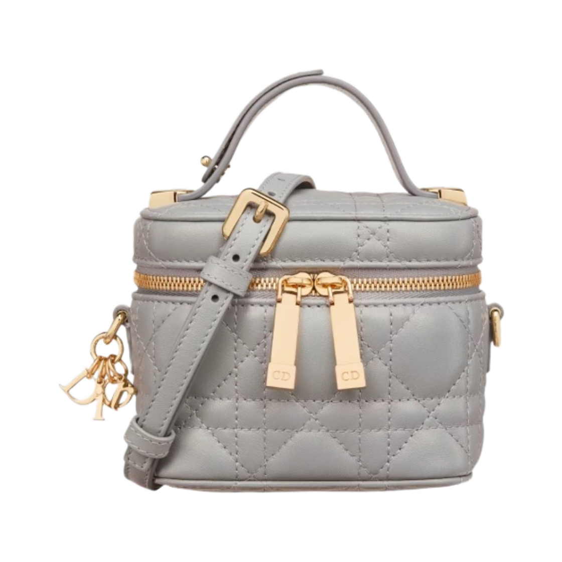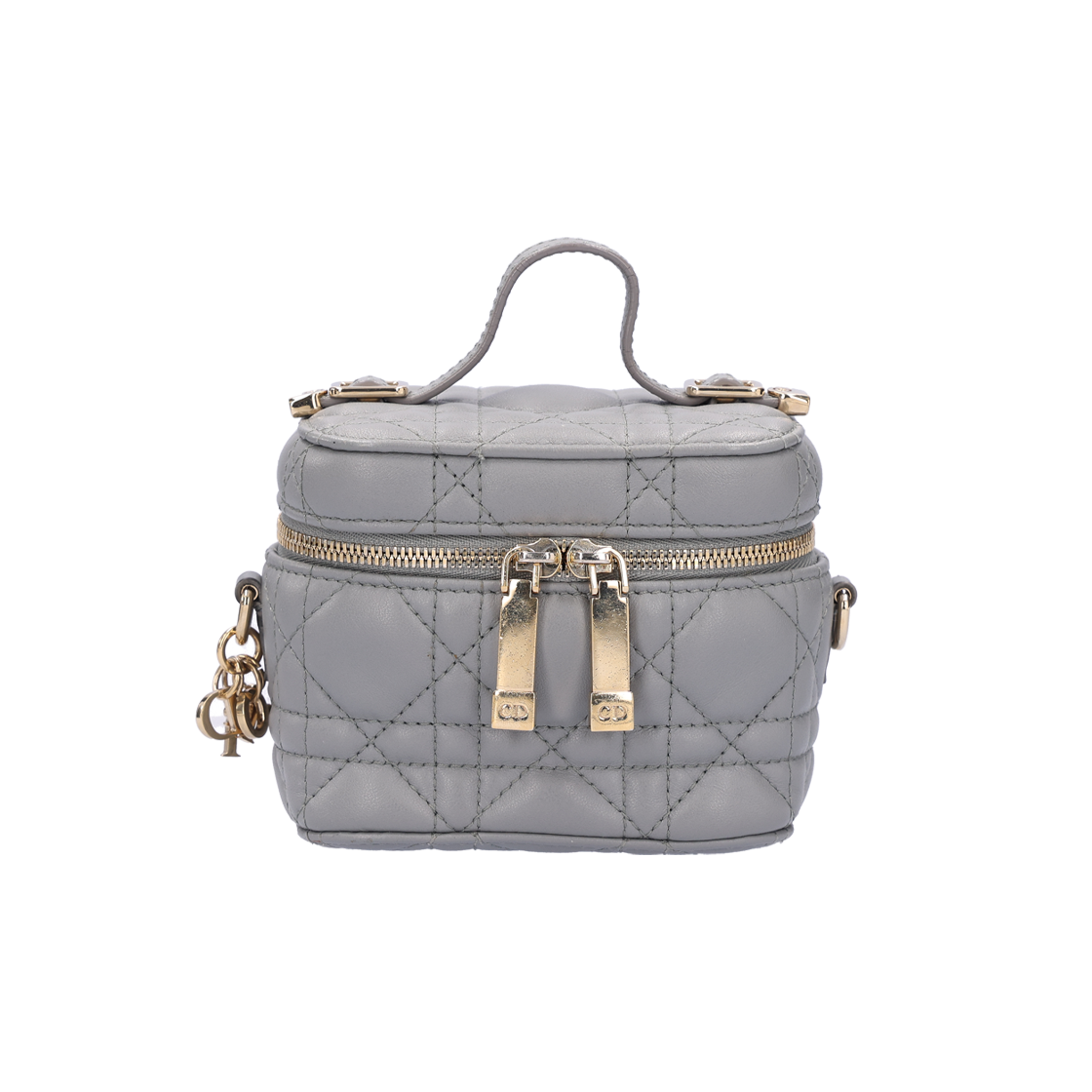 디올 레이디 마이크로 베니티 케이스 그레이 스톤 까나쥬 램스킨
