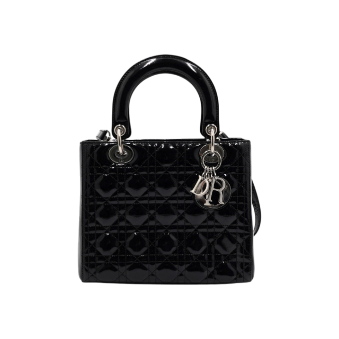 디올 VRB44551 블랙 유광 페이던트 레이디디올 미디엄 까나쥬 토트백 겸 숄더백aa61240