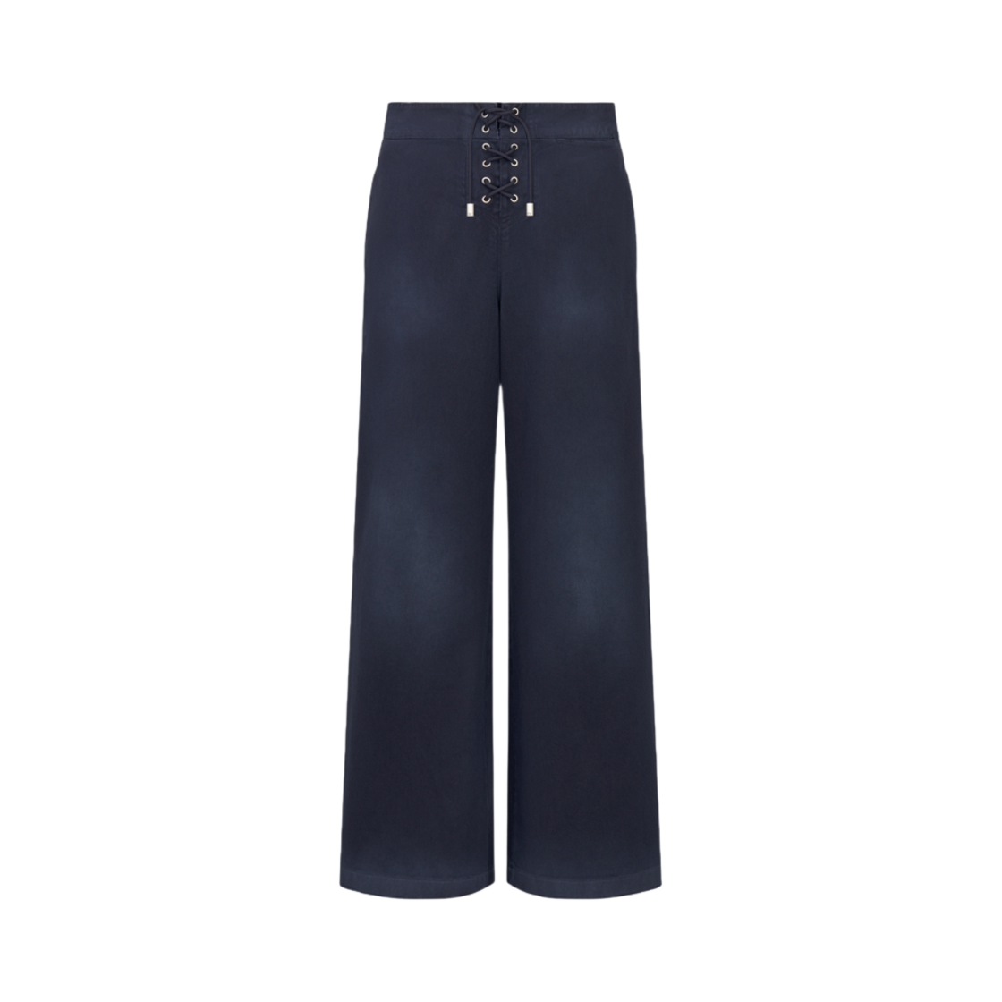 (W) 디올 스톤워시드 스트레치 코튼 개버딘 플레어 팬츠 딥 블루