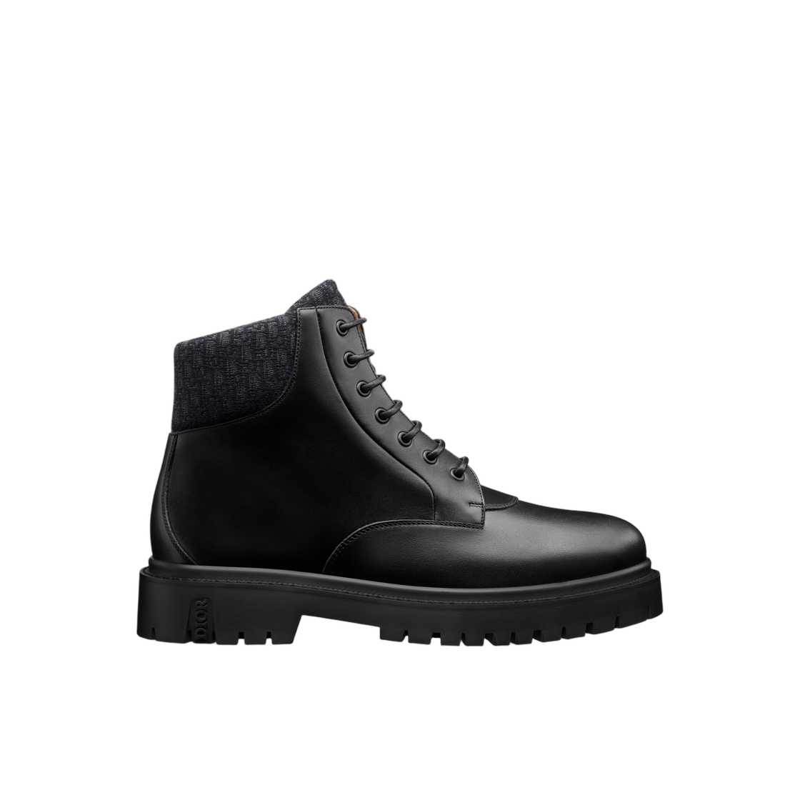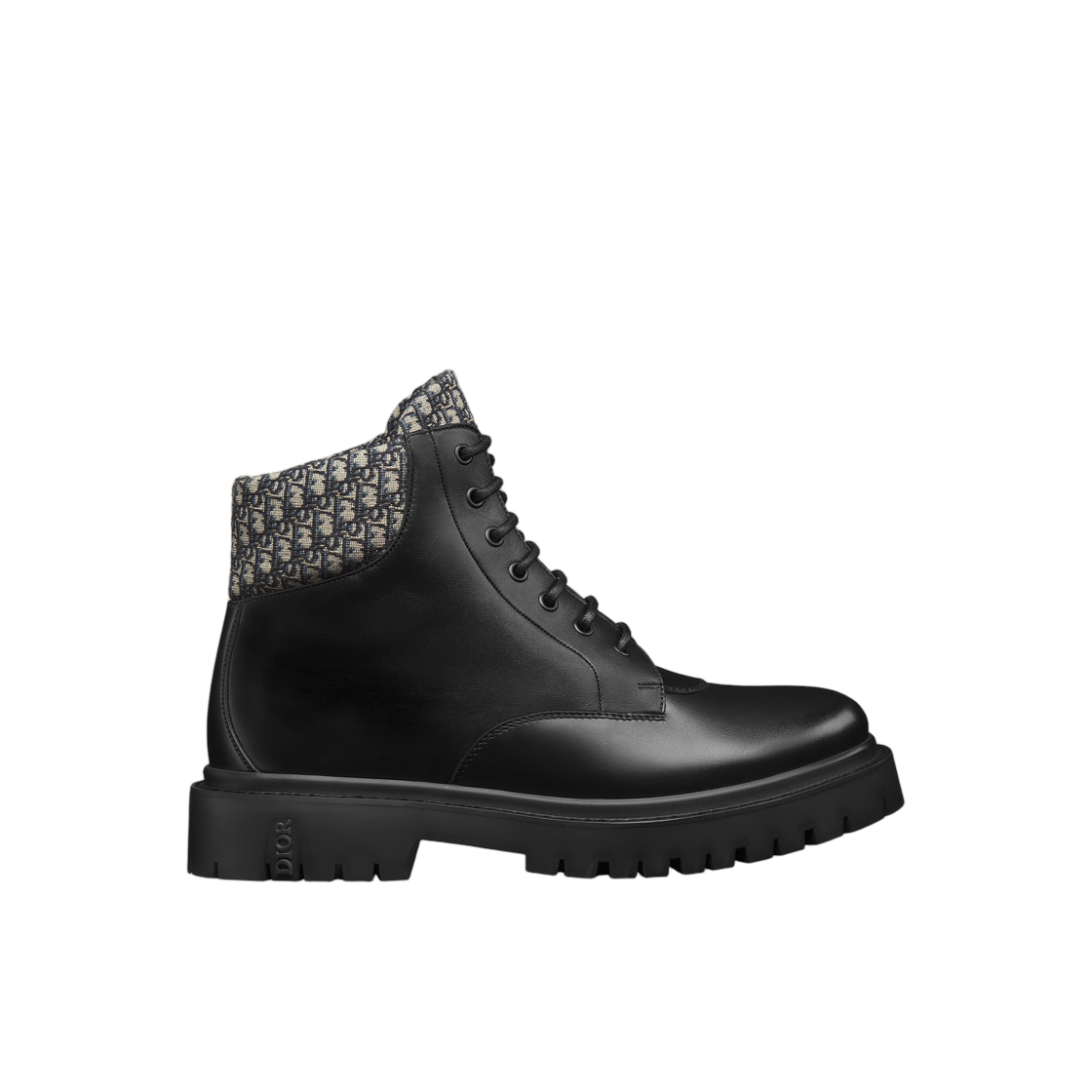 디올 익스플로러 III 앵클 부츠 스무스 카프스킨 앤 디올 오블리크 자카드 블랙