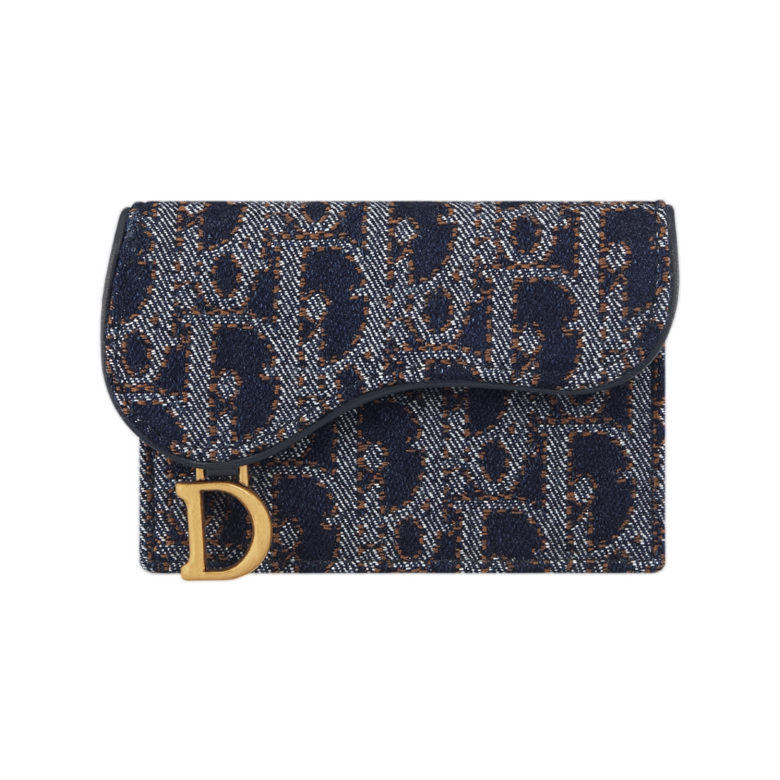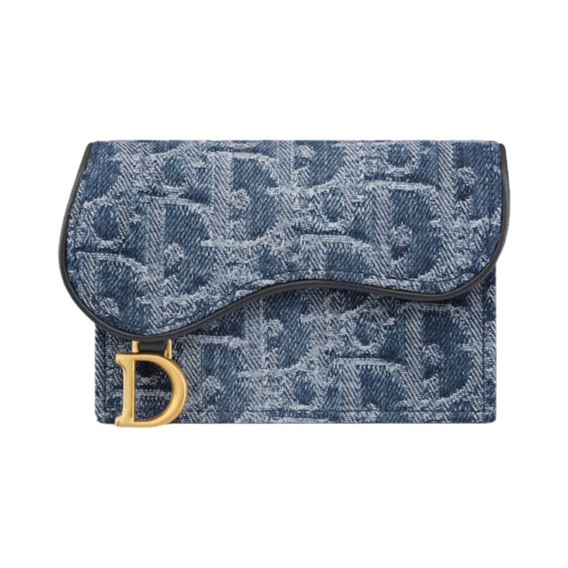 디올 오블리크 새들 블룸 카드 월렛 블루 데님 자카드