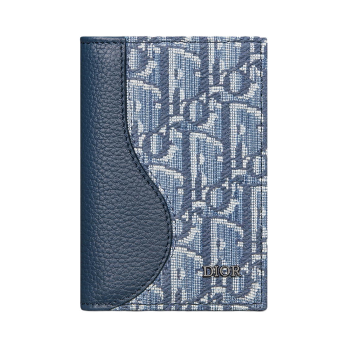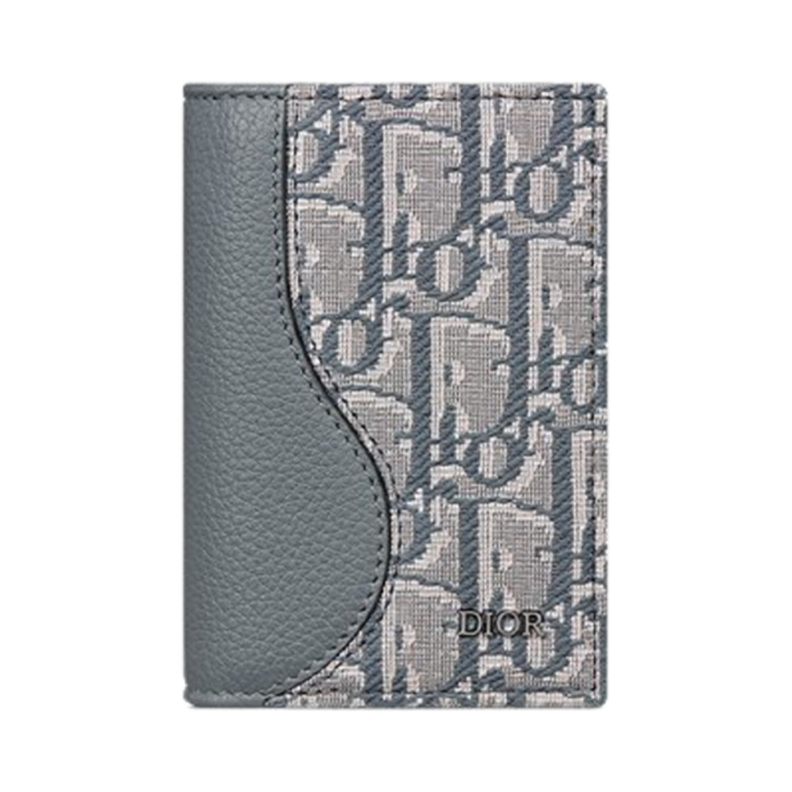 디올 새들 버티컬 바이폴드 카드 홀더 그레인드 카프스킨 & 디올 오블리크 트리오 자카드 마르퀘트리 딥 블루 딥 블루