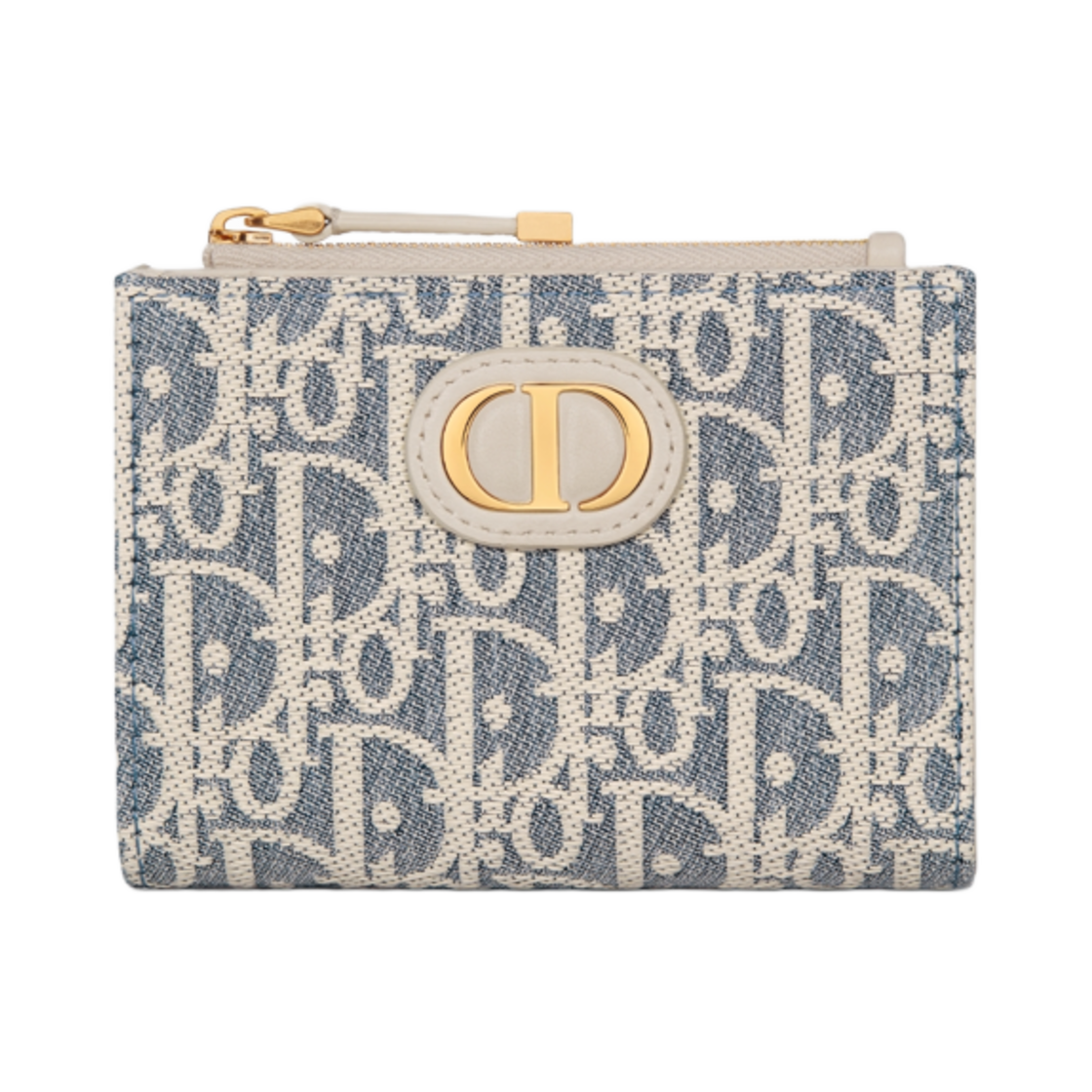 디올 30 몽테인 메리골드 지퍼 카드 홀더 디올 오블리크 자카드 블루