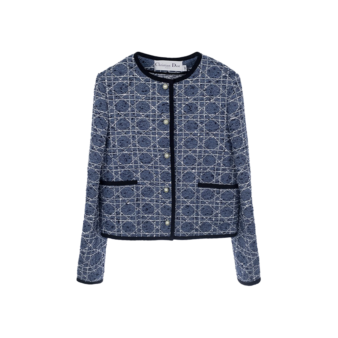 디올 매크로 까나쥬 코튼 블랜드 크롭 트위드 자켓 34 블루
