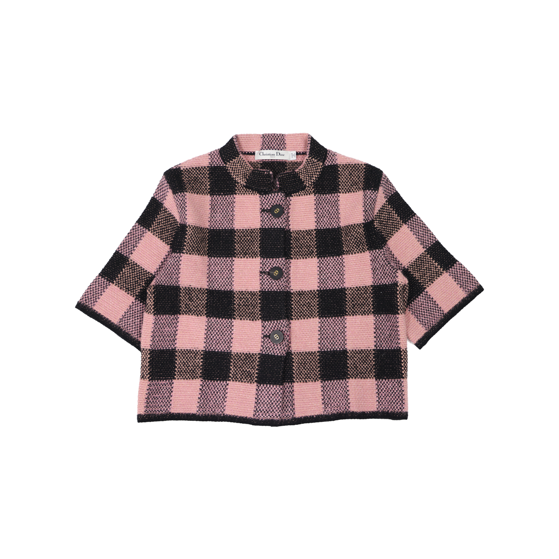 디올 344V10AM214 크롭 자켓 체크앤디올 울 알파카 코튼 블렌드 니트 핑크 블랙
