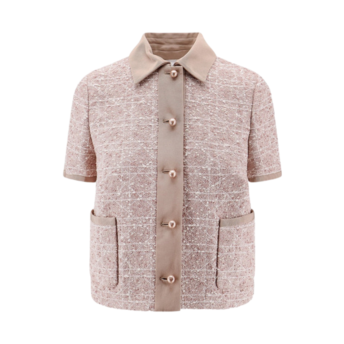 디올 매크로까나쥬 숏슬리브 코튼 블렌드 트위드 블레이저 핑크