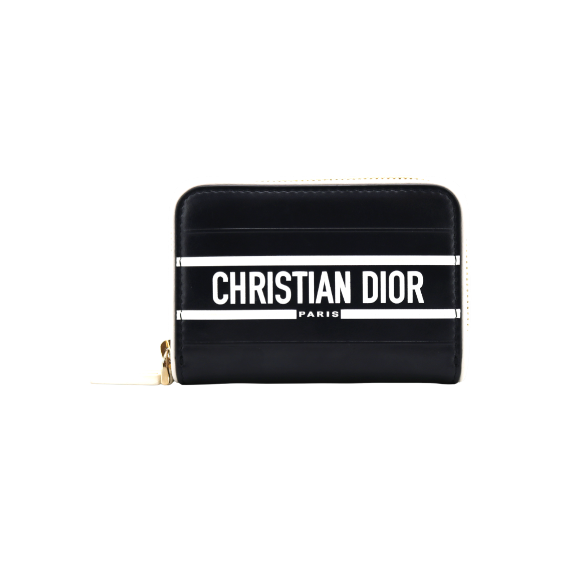 디올 카드 홀더 그레인드 카프스킨 & CD 아이콘 시그니쳐 블랙