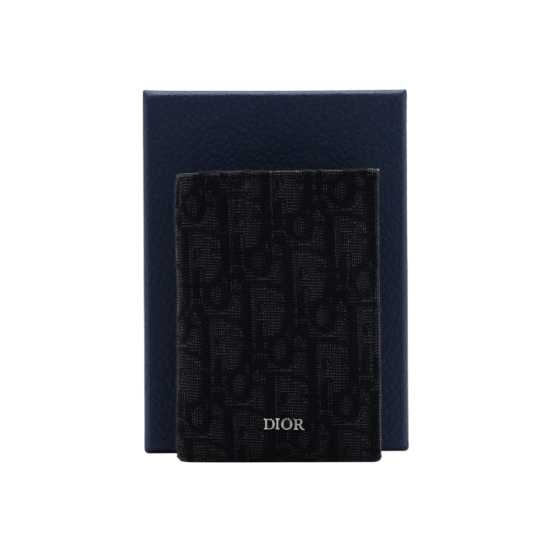 디올 BI 폴드 카드 홀더 루테늄 컬러드 디올 오블리크 자카드