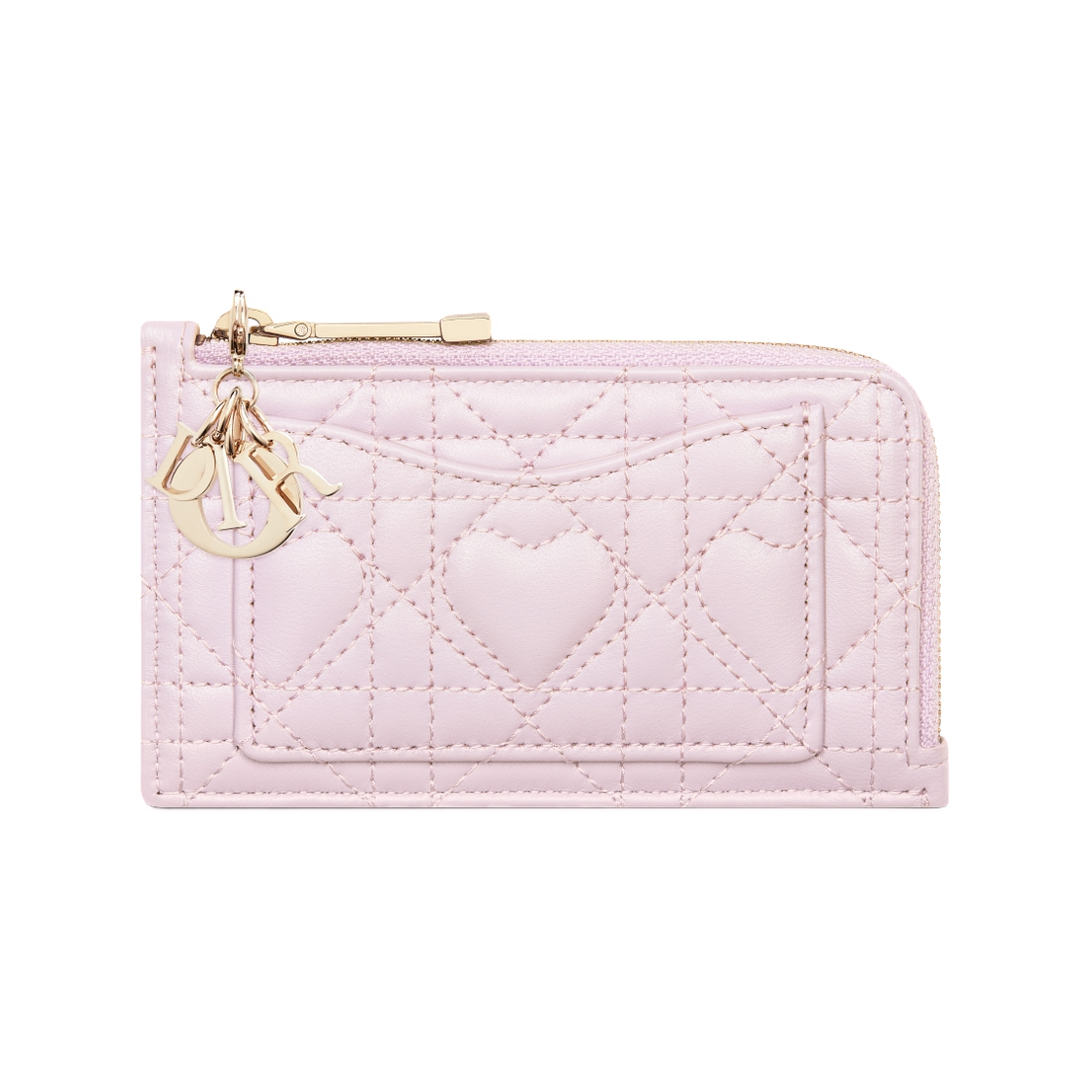 (W) 디올 아무르 레이디 디올 코스모스 집 카드 홀더 하트 까나쥬 램스킨 페일 핑크