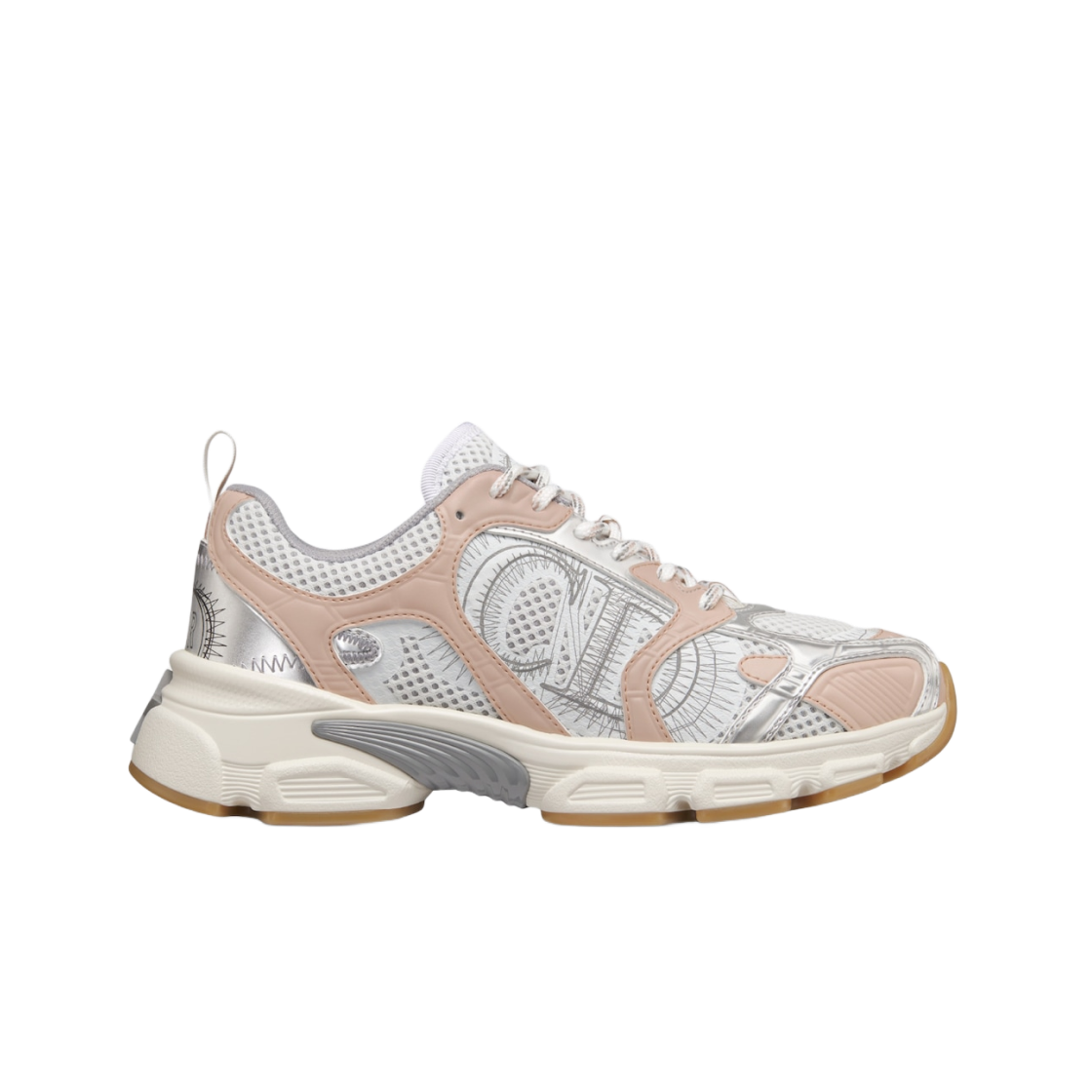 (W) 디올 크로노 스니커즈 메쉬 라미네이티드 레더 화이트 누드 실버