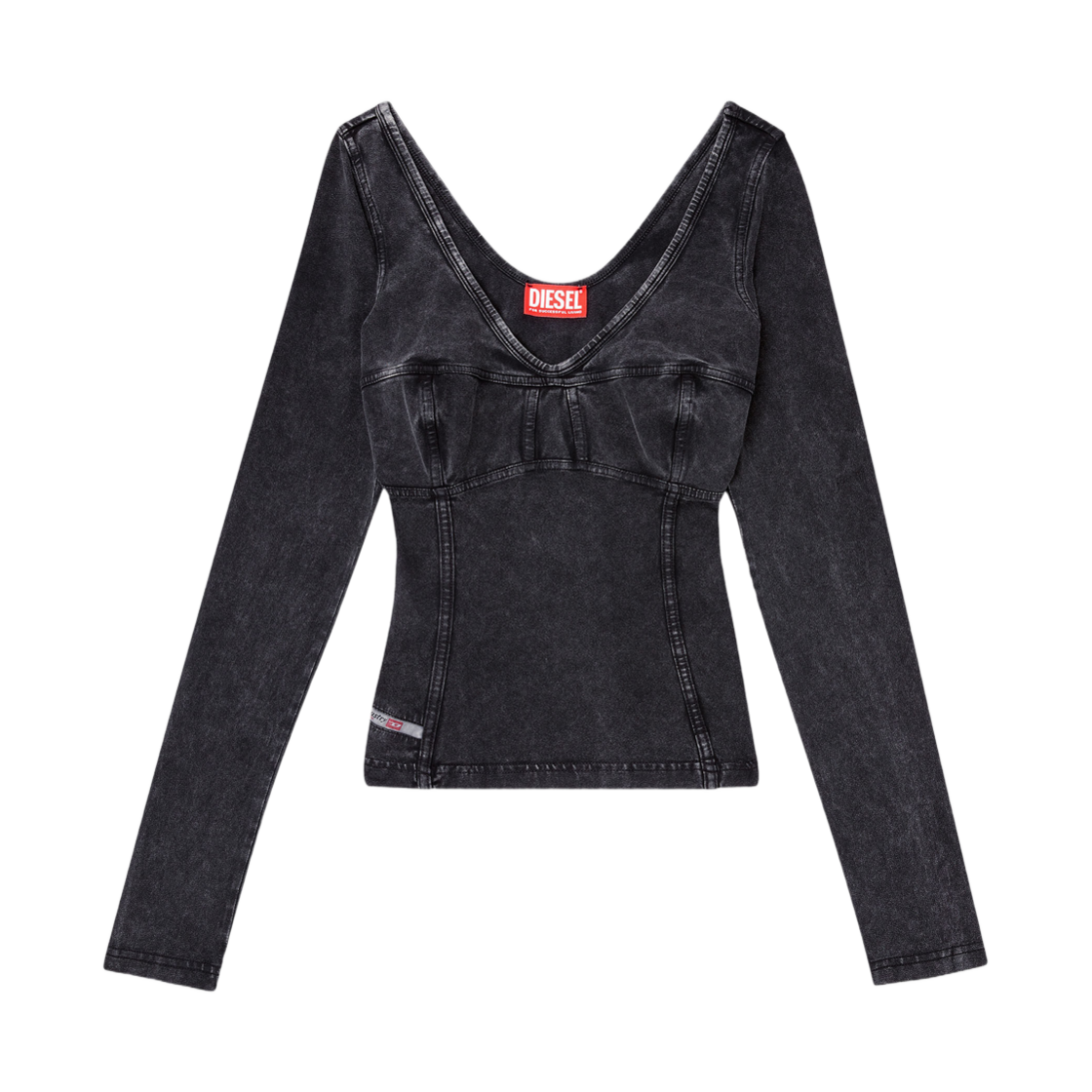 (W) 디젤 T-엘린 롱슬리브 탑 데님 이펙트 블랙