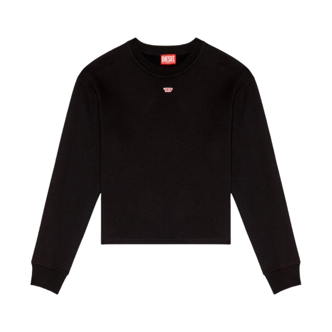 (W) 디젤 F-슬리미-Od 컷아웃 로고 크롭 스웨트셔츠 블랙